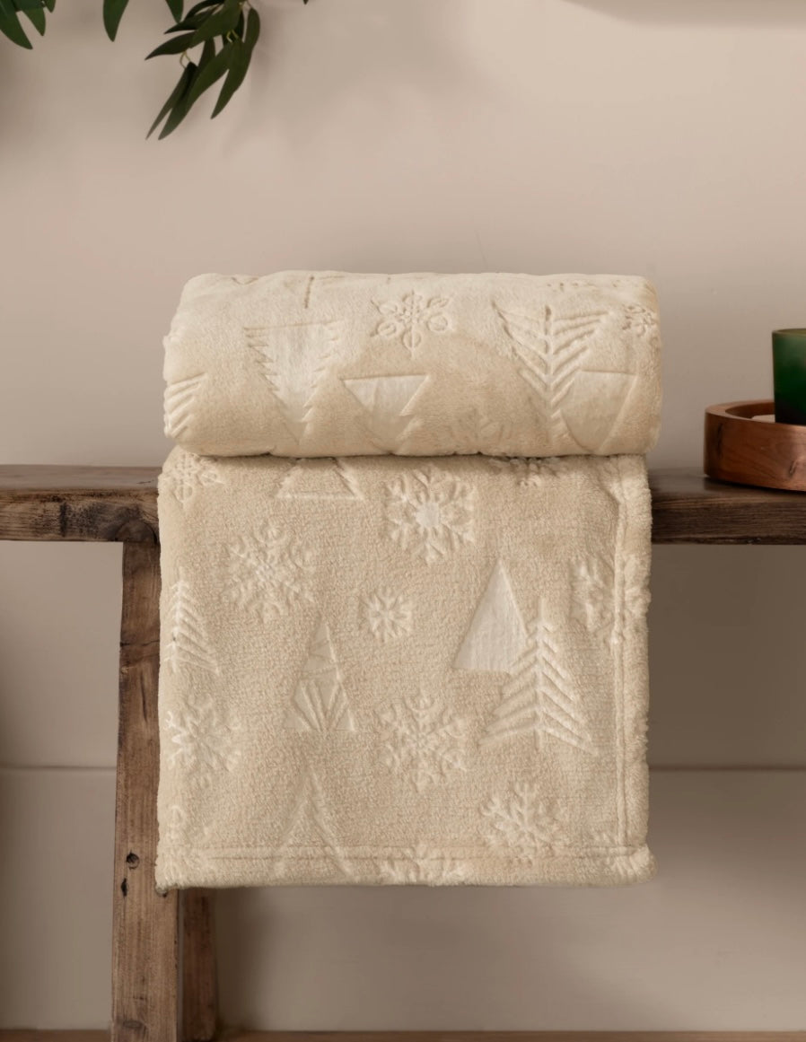 Enveloppez votre maison d’une douceur réconfortante grâce au Plaid Tree Time, confectionné dans une somptueuse flanelle polaire. Ses motifs délicatement embossés de flocons de neige et de sapins évoquent avec élégance la magie de l’hiver, ajoutant une note raffinée à votre décoration.