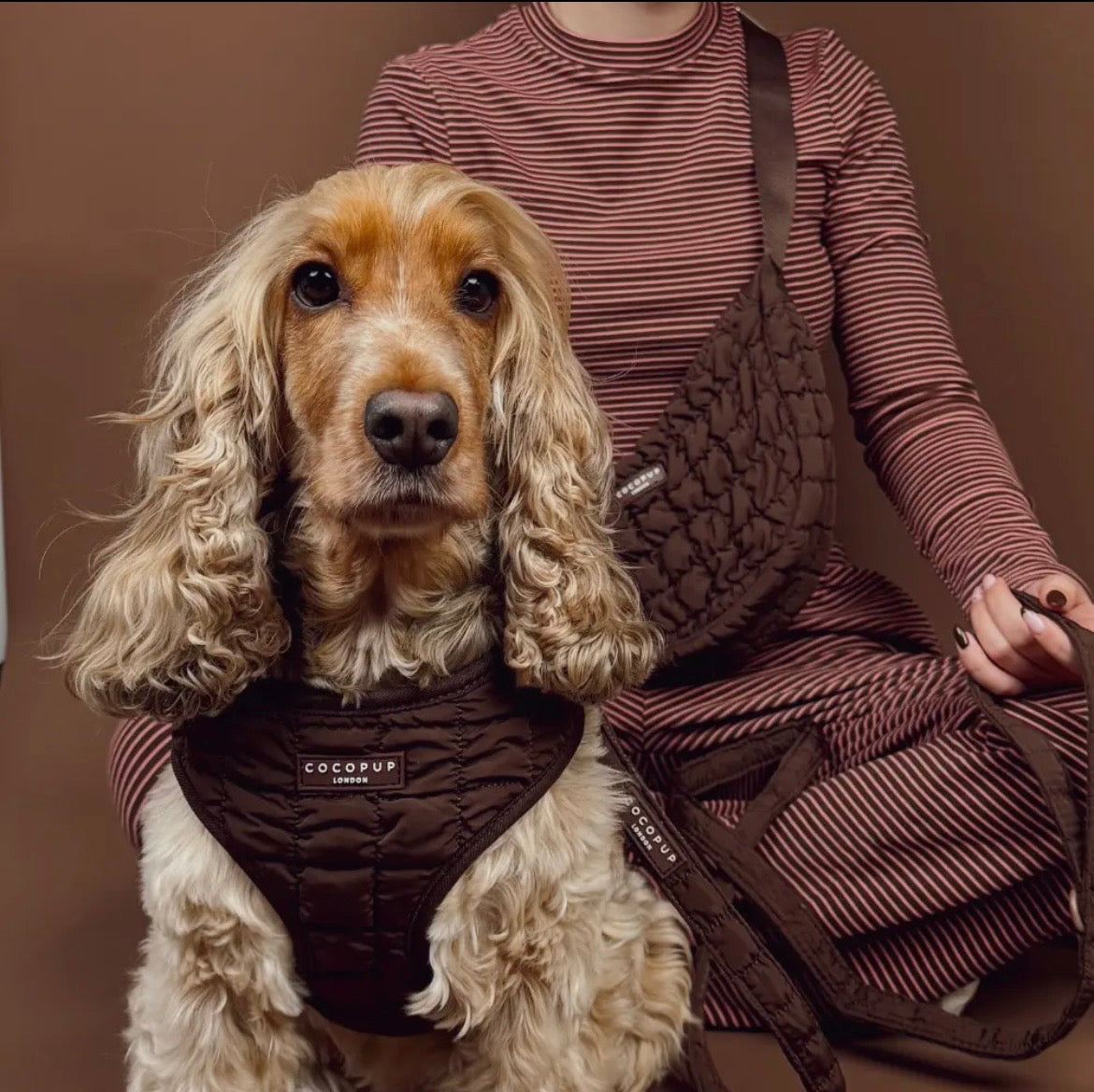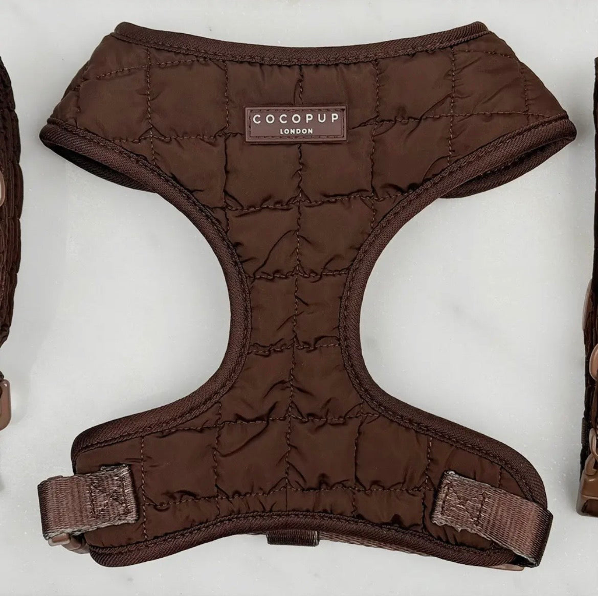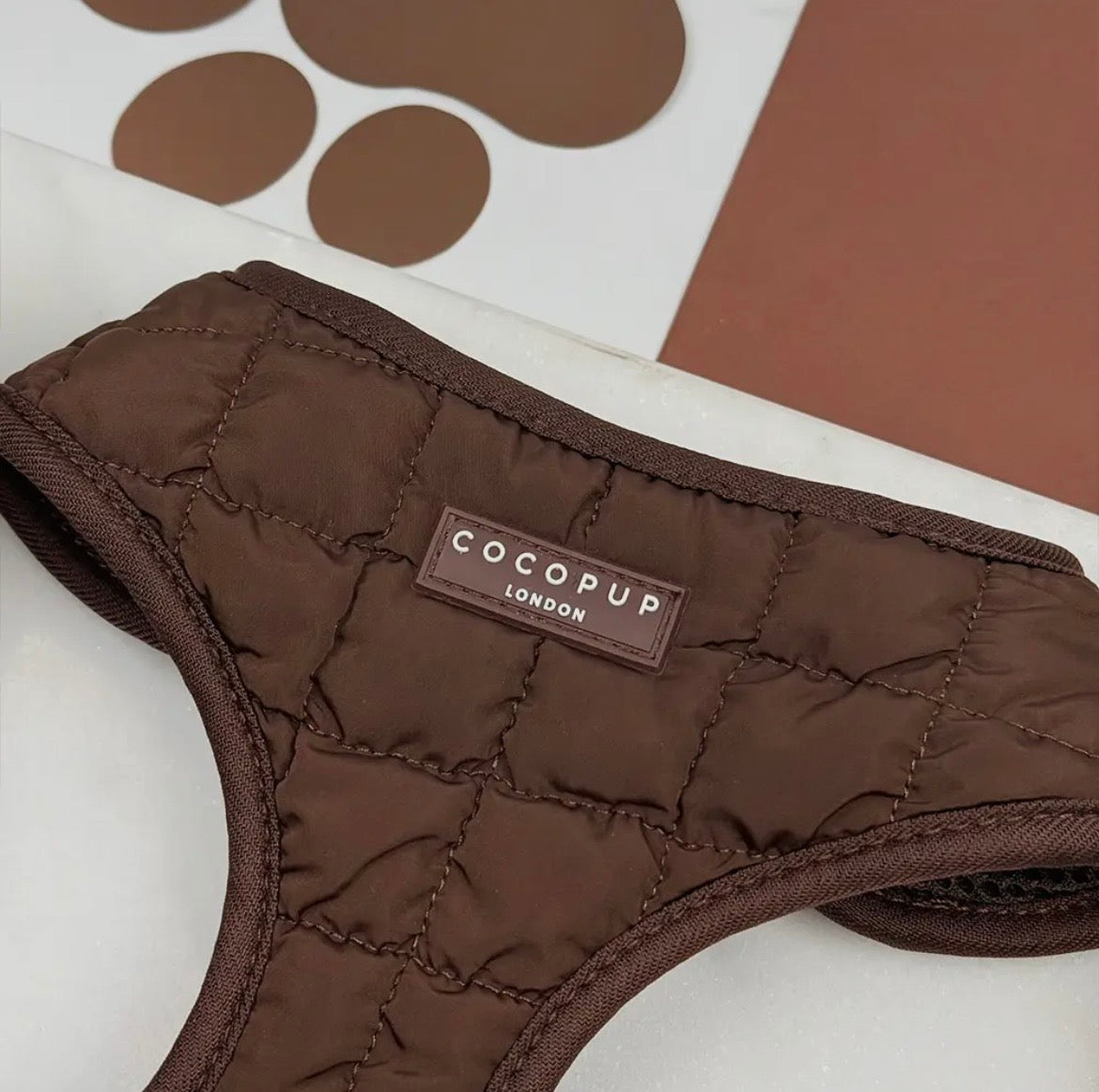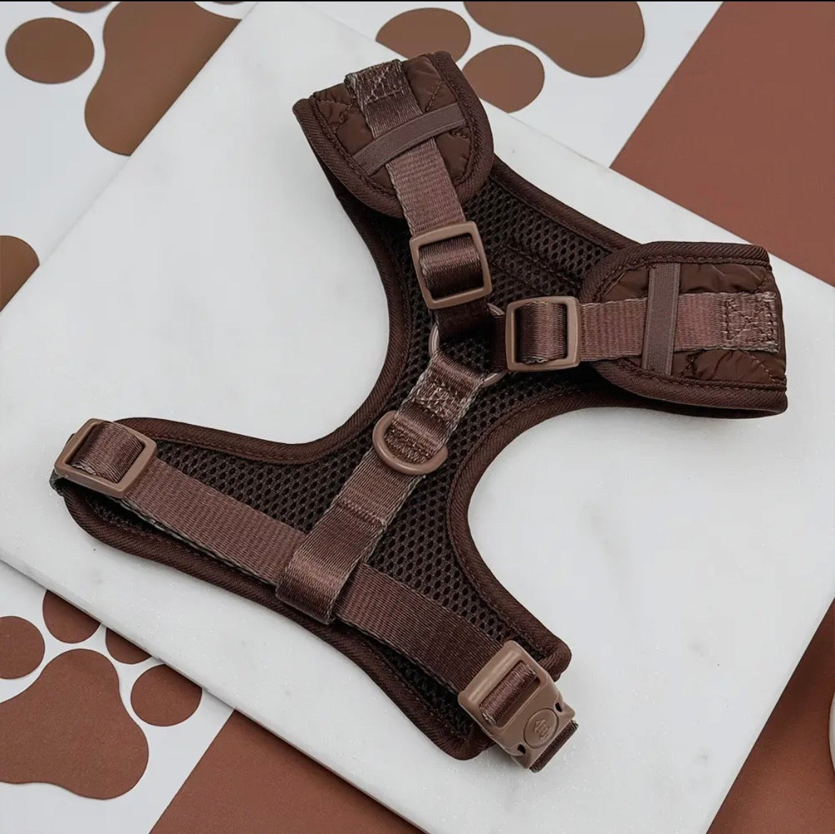 Rendez chaque promenade de chien élégante avec le Harnais à Col Réglable Matelassé Espresso dans une teinte chic de marron chocolat.