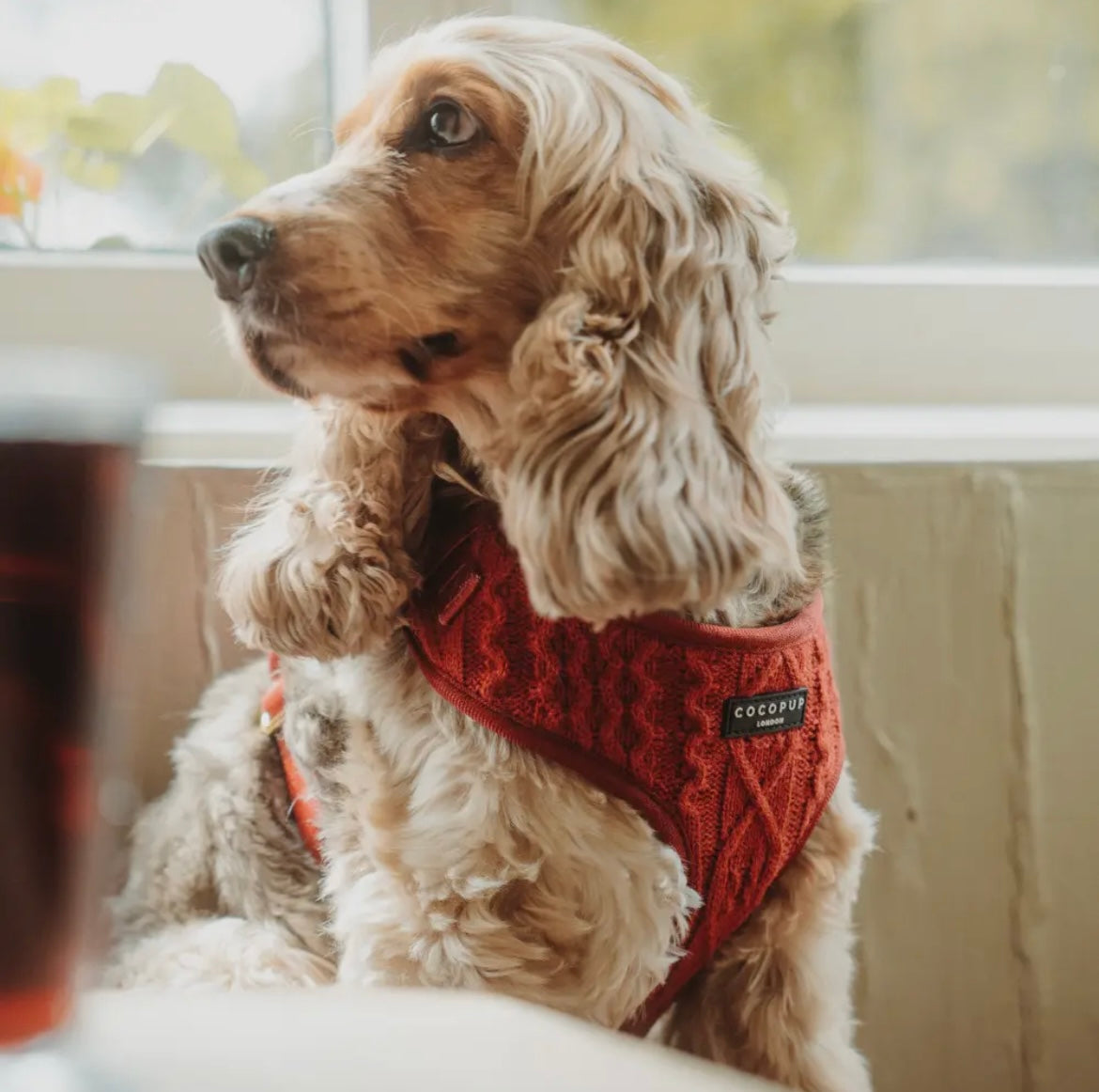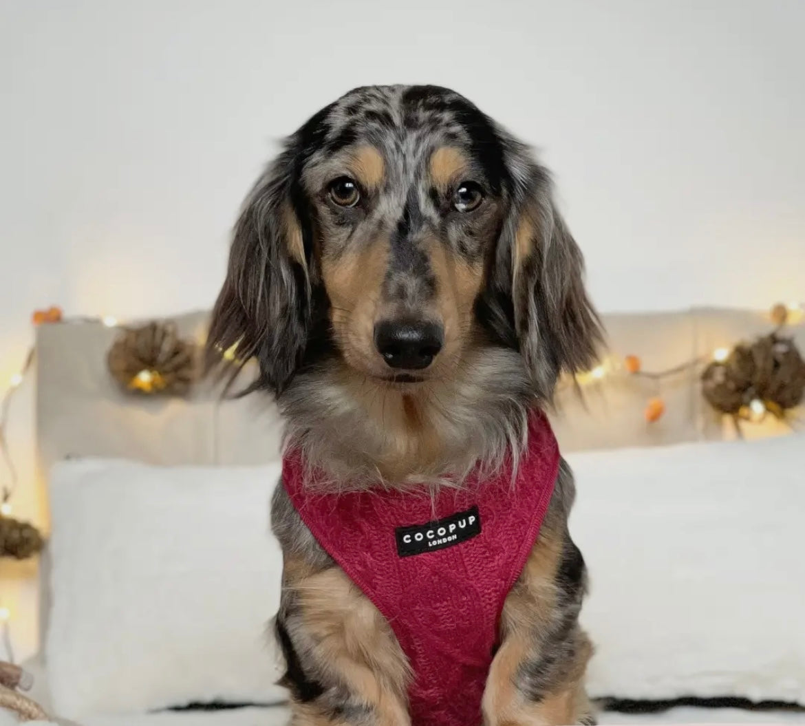 Promenez votre chiot avec style grâce à notre Harnais à Col Ajustable en Tricot Wine.